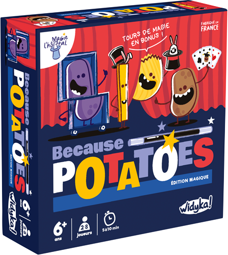 Quatre types de patates ont des accessoires : chapeau, cartes et boîte magique... ou rien du tout !